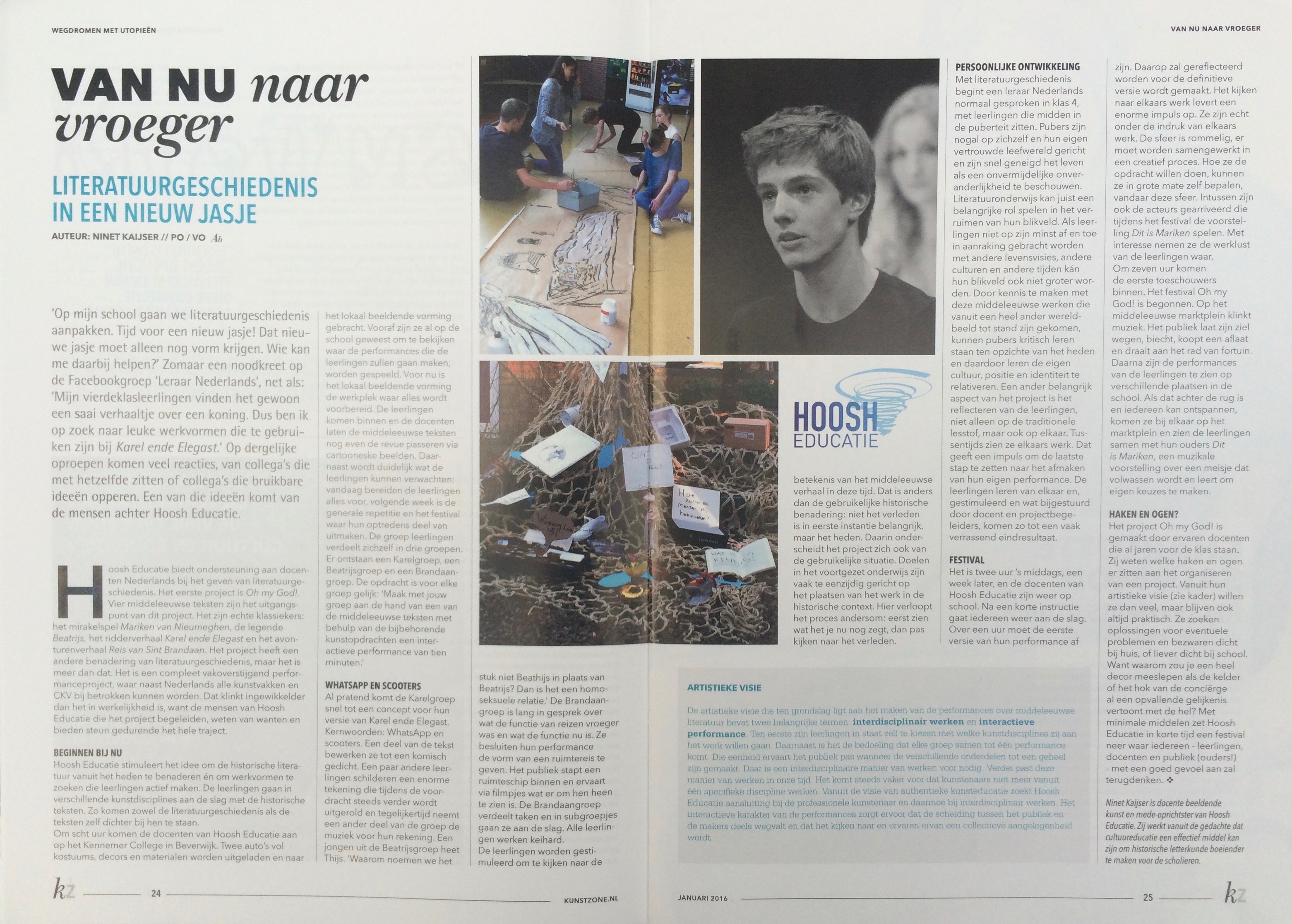 In het nieuwste nummer van Kunstzone ‘Wegdromen met utopieën, een wereld waarin het onderwijs zich aanpast aan jou’, staat een steengoed artikel over de werkwijze van Hoosh Educatie. Klik hier om het artikel te lezen.