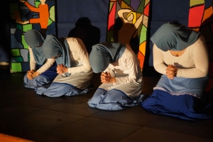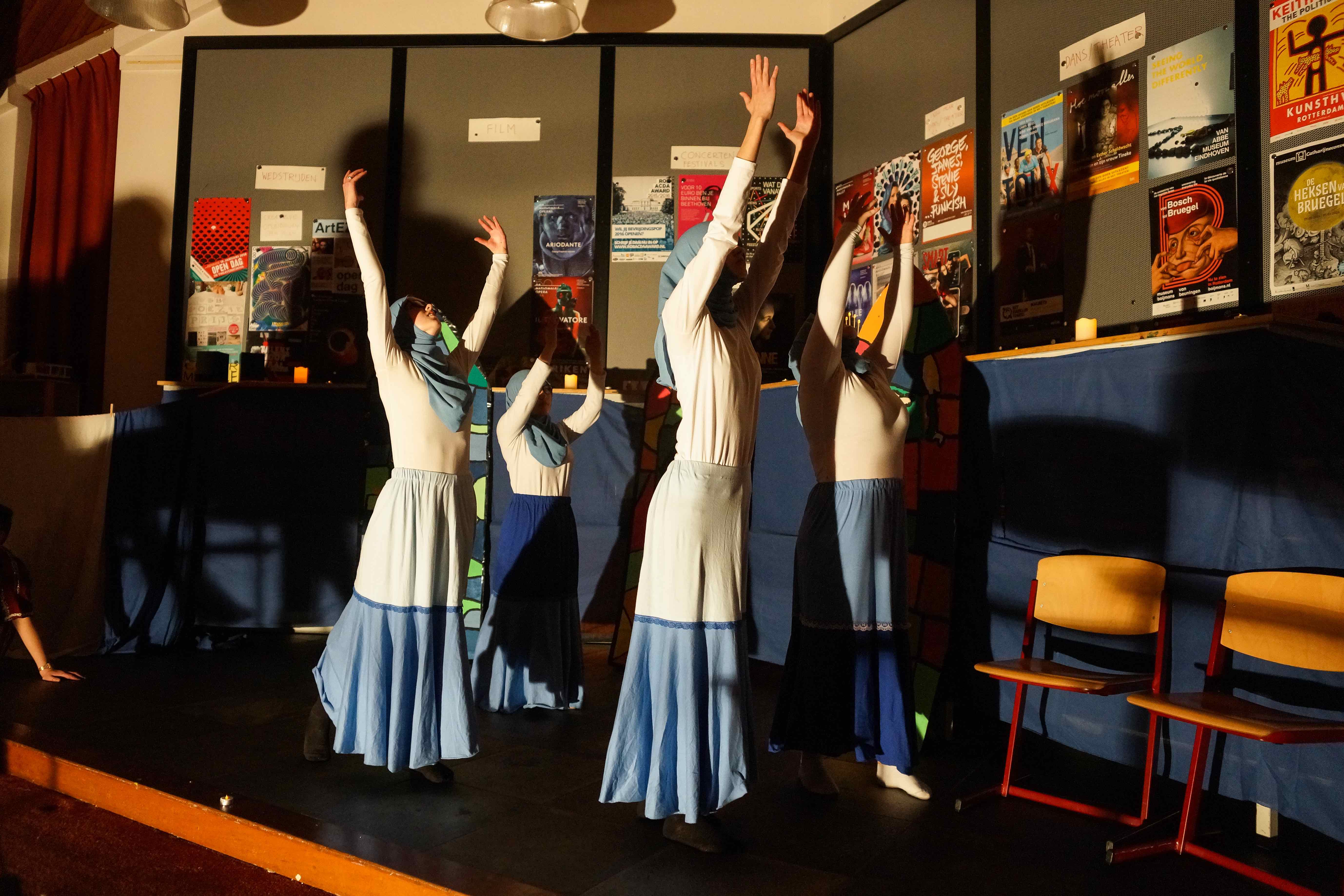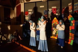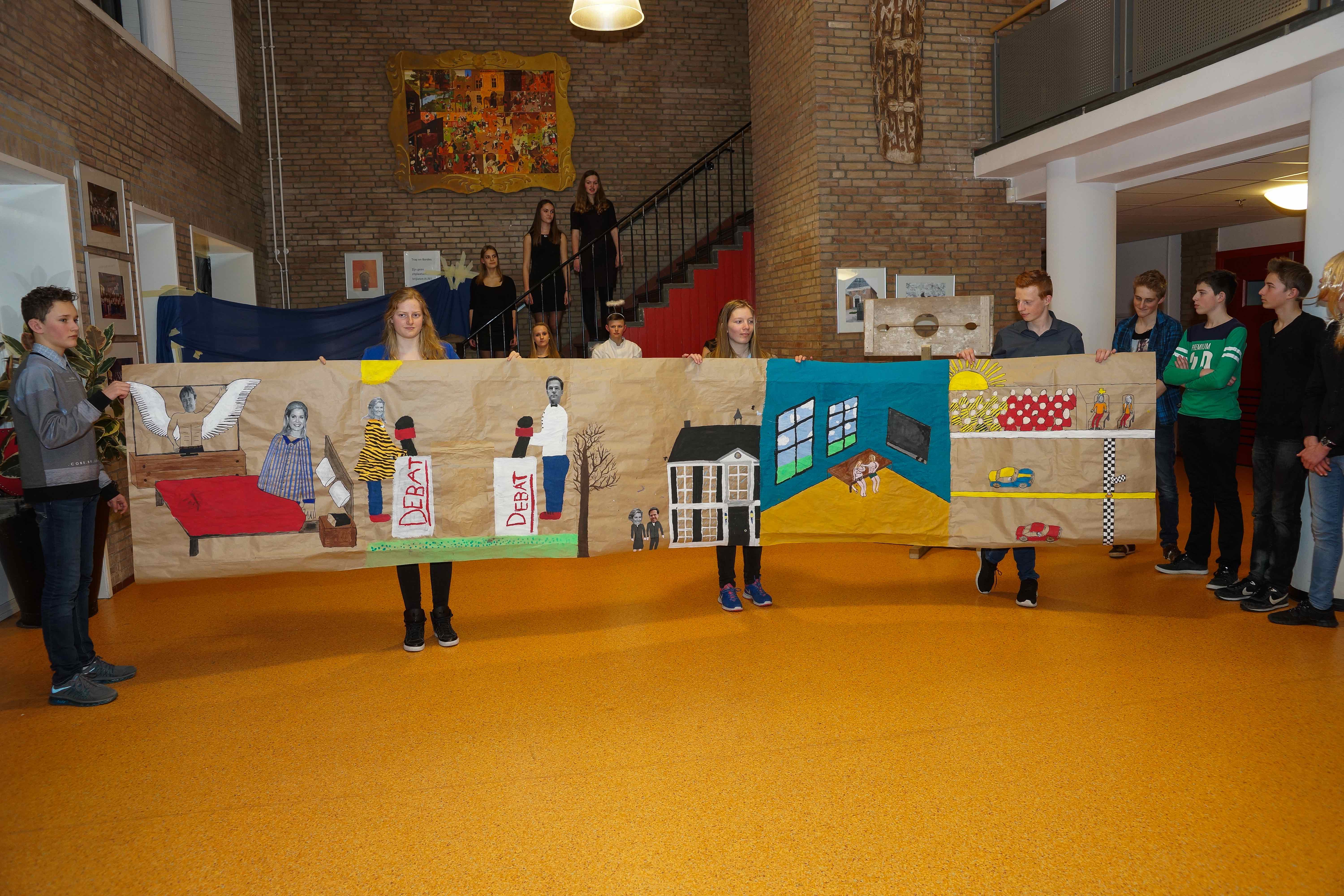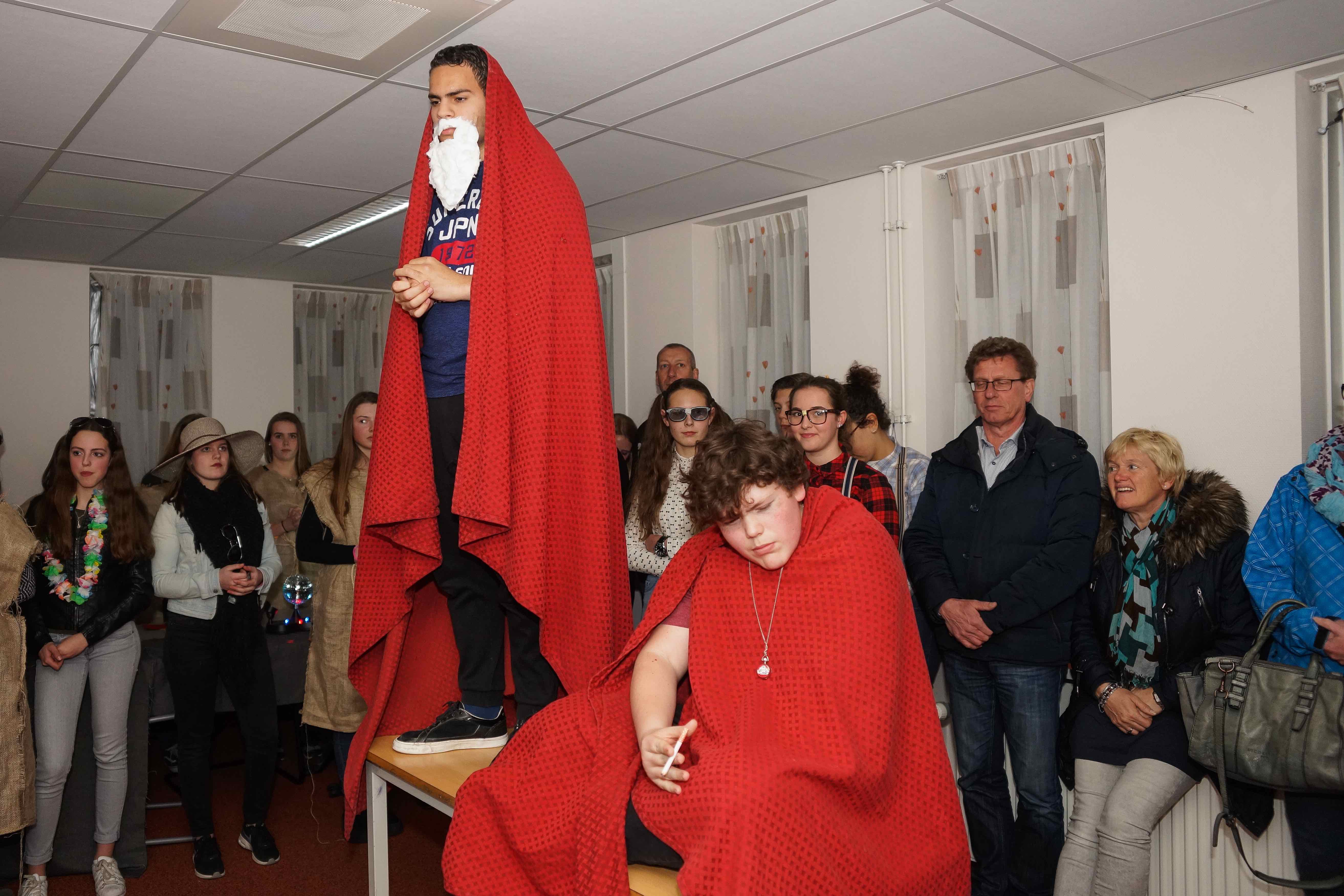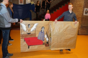 Op het Kennemer College in Beverwijk hebben leerlingen tijdens de workshops in twee dagen performances gemaakt rondom de teksten van Reis van sint Brandaan, Van de vos Reynaerde, Karel ende Elegast en Beatrijs. Hieronder ziet u een impressie van de performances die ze voor hun publiek (ouders, broers en zussen, opa’s en oma’s, docenten) hebben opgevoerd.